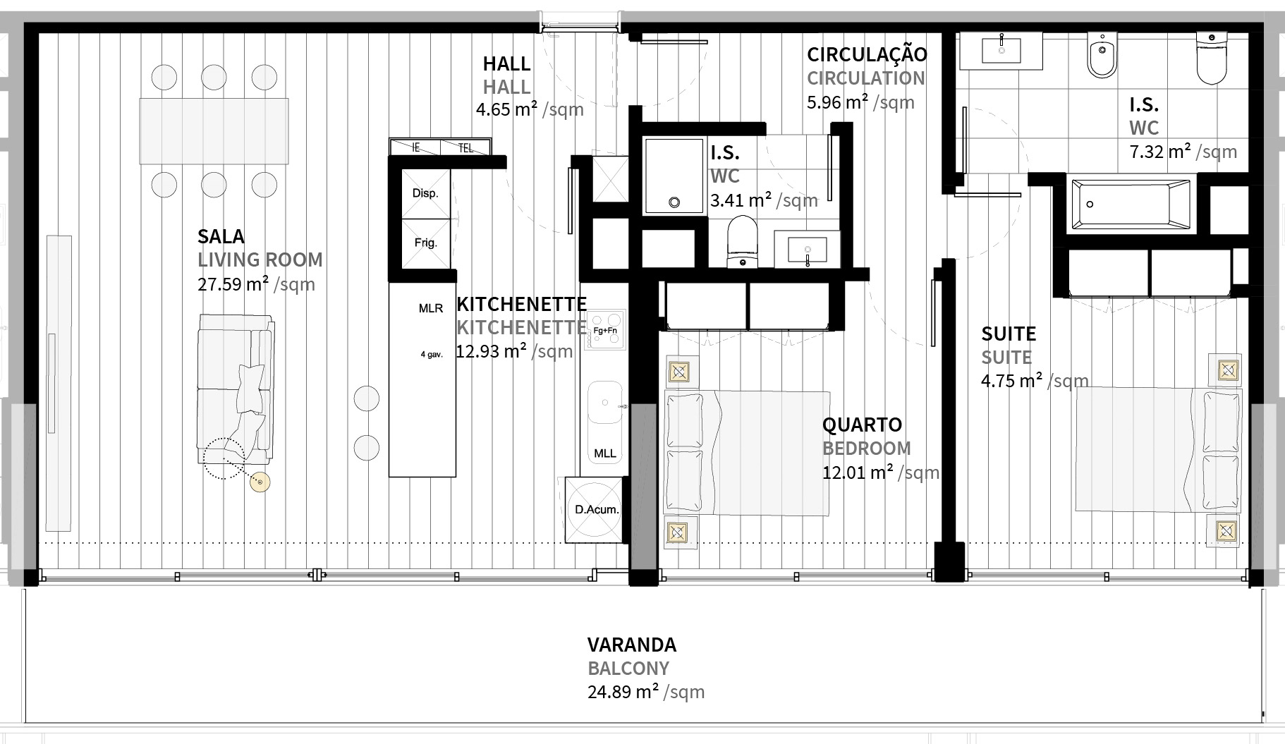 Área Bruta Privativa Total – 129m2;